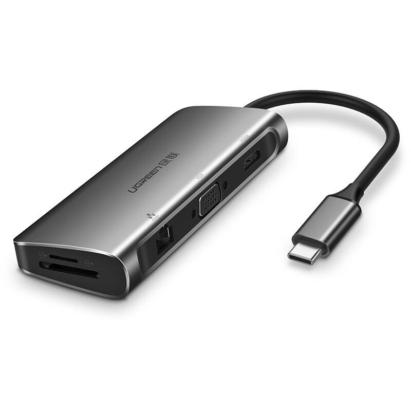 Cáp chuyển đa năng USB C Ugreen 40873 là thiết bị chuyển đổi đa năng cao cấp chuyên dùng cho các thiết bị hỗ trợ cổng USB Type C đời mới như Macbook, Lenovo, HP...Cáp chuyển USB C to HDMI + VGA + USB 3.0 + LAN 1Gbps + Card Reader đa năng Ugreen 40873