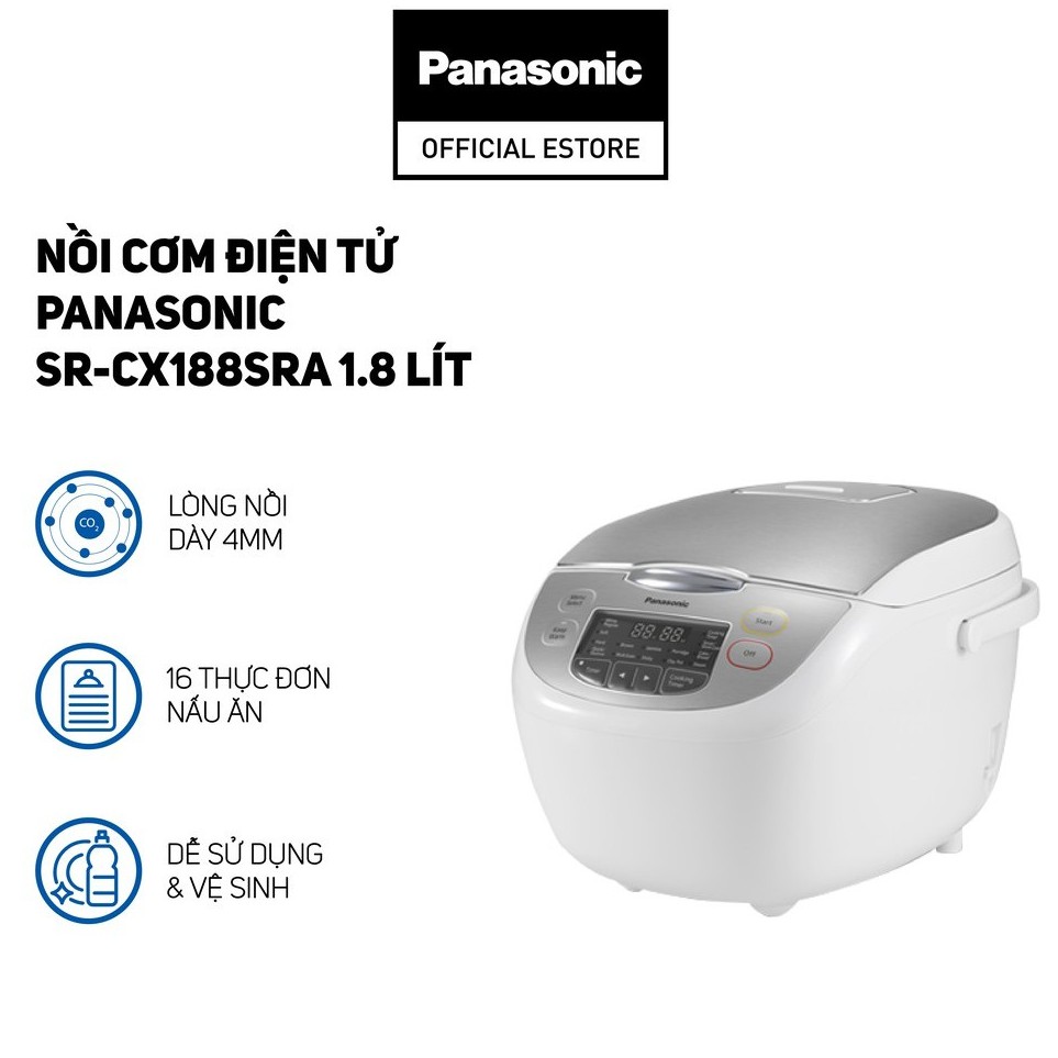 [Mã ELHADEV giảm 4% đơn 300K] Nồi cơm điện tử Panasonic SR-CX188SRA 1.8 lít - Hàng chính hãng - Trắng