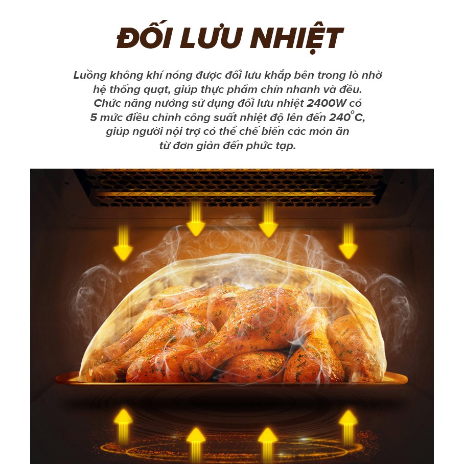 • 2 dàn nướng điện trở, nhiệt nướng đối lưu đạt 240 độ C