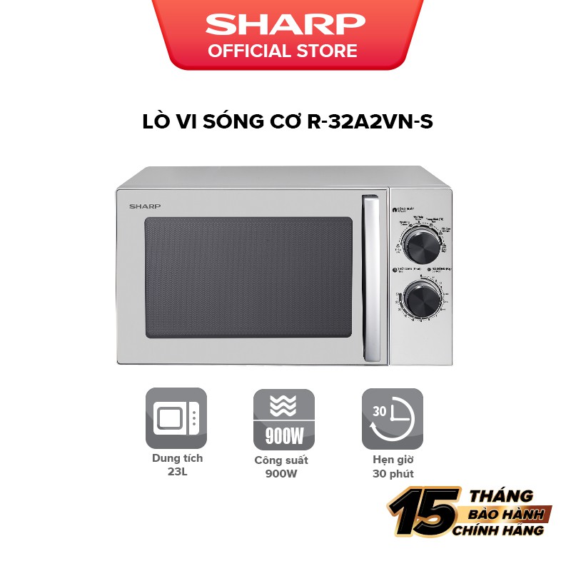 • Lò vi sóng cơ Sharp R-32A2VN-S (23 lít)• Công suất vi sóng 900W.