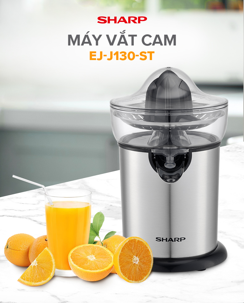 • Máy Vắt Cam Sharp EJ-J130-ST Đầu Rót Trực Tiếp• Máy vắt cam kiểu dáng gọn đẹp, hiện đại, dùng đẹp trong mọi không gian.