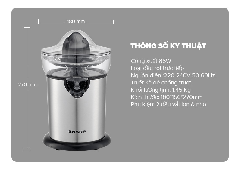 Thiết Bị Điện Gia Dụng > Đồ gia dụng nhà bếp > Máy trộn thực phẩm || [Mã ELMALL10 giảm 10% đơn 500K] Máy Vắt Cam Sharp EJ-J130-ST Đầu Rót Trực Tiếp - Hàng Chính Hãng Bảo Hành 12 ThángCòn hàng