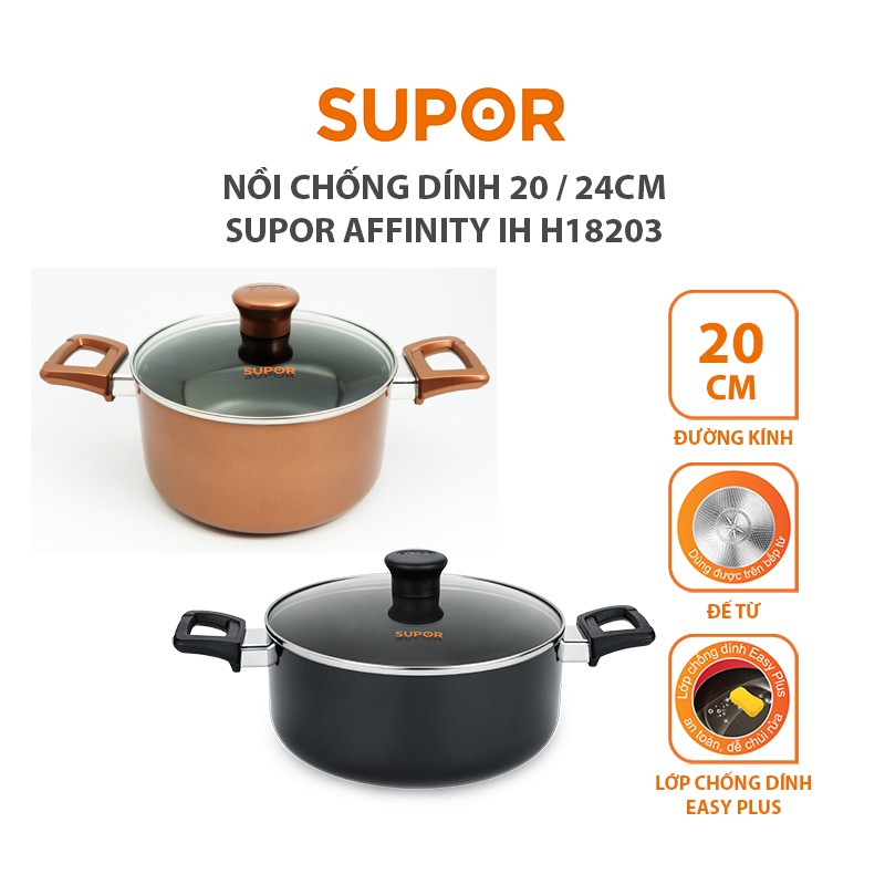 Nhà cửa & Đời sống > Dụng cụ nhà bếp > Nồi || [Mã HLSEB10 giảm 10% tối đa 100K đơn 300K] Nồi chống dính SUPOR Affinity IH H18203 20/24CMCòn hàng