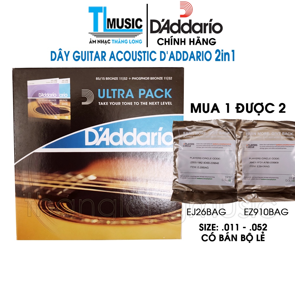 Sở thích & Sưu tầm > Nhạc Cụ & Phụ Kiện > Phụ Kiện Âm Nhạc || [Mã LIFE0803ALL giảm 10% đơn 0K] [Chính hãng] D'ADDARIO EJ-26+EZ910 (ULTRA PACK) COMBO DÂY ĐÀN GUITAR ACOUSTICCòn hàng
