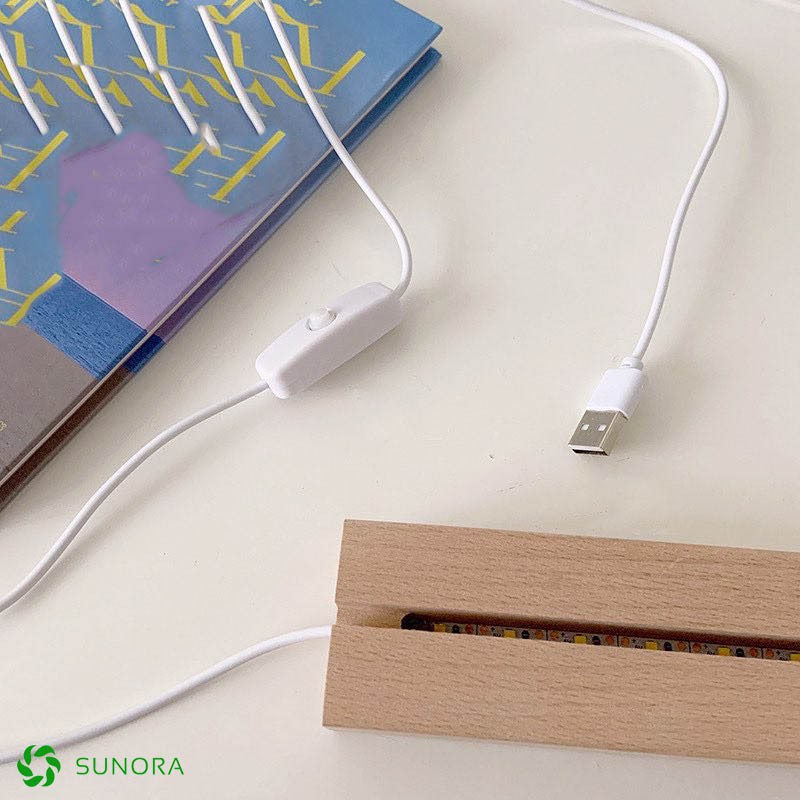 Sunora có tặng kèm bút viết và có thể xóa và sửa dễ dàng. Sản phẩm đèn để bàn sử dụng dây cắm usb, không cần sử dụng pin.