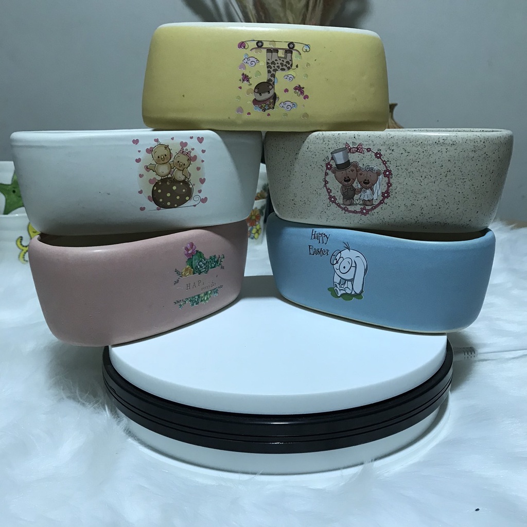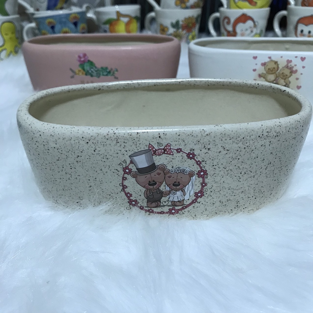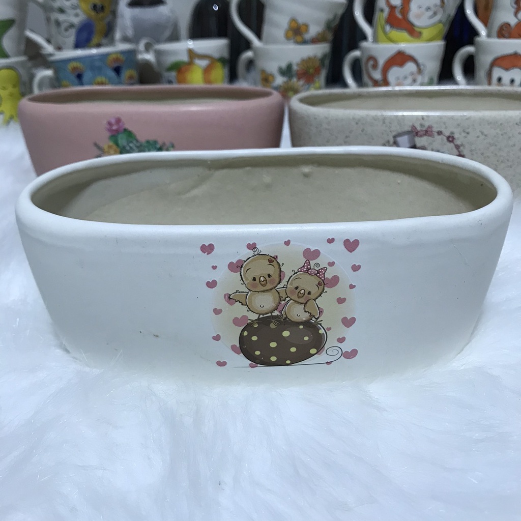 - Chậu men, in hình xinh xắn. Mang lại cảm giác sinh động và sang trọng.