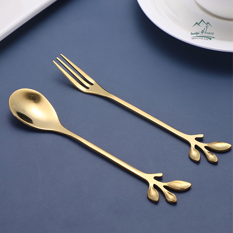 Giới thiệu Thìa, Dĩa Ăn Bánh Mứt, Uống Cà Phê Màu Vàng Decor