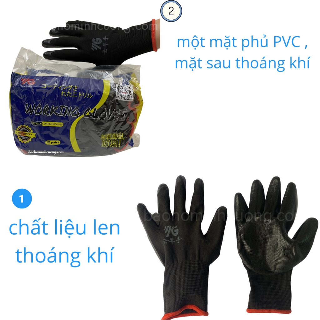 - Thiết kế: Thiết kế một mặt phủ PVC, mặt sau thoáng khí, vắt sổ cổ tay chắc chắn, dễ dàng thao tác