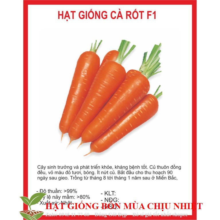 Hạt Giống Cà Rốt Cao Sản F1 ĐẾN MÙA TRỒNG TẾT