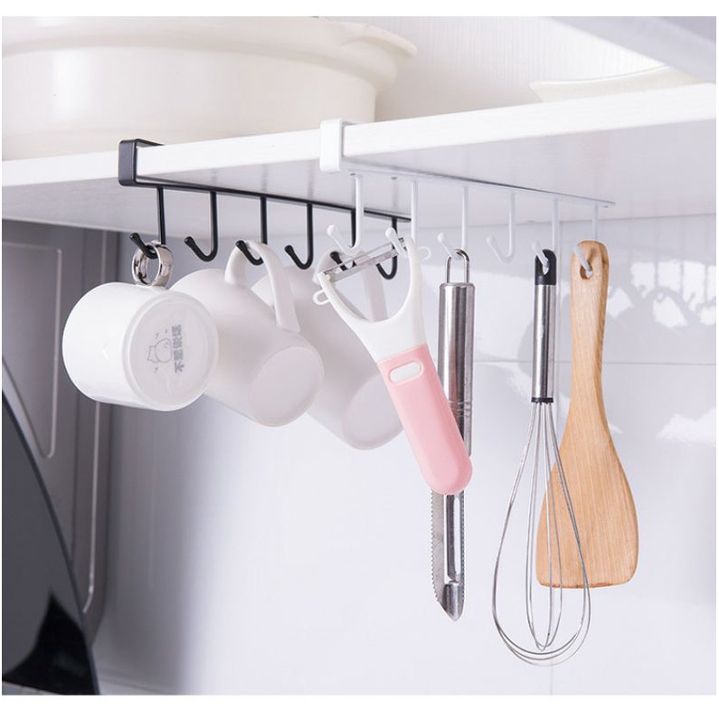 - Thanh 5 móc treo nhà bếp giúp treo giữ cốc, khăn, dụng cụ nhà bếp gọn gàng, sạch sẽ.- Được treo gắn dưới tủ tiết kiệm diện tích, dễ dàng lắp đặt và phù hợp với nhiều loại tủ.