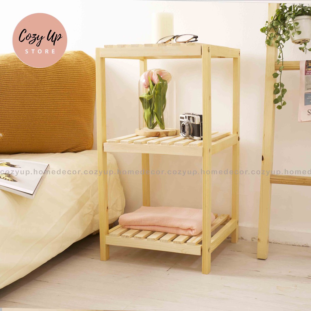 Giới thiệu [Mã LIFEBK1611 giảm 10% đơn 300K] KỆ VUÔNG 3 TẦNG ĐẦU GIƯỜNG GỖ THÔNG TRANG TRÍ