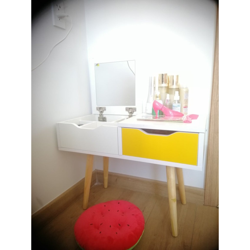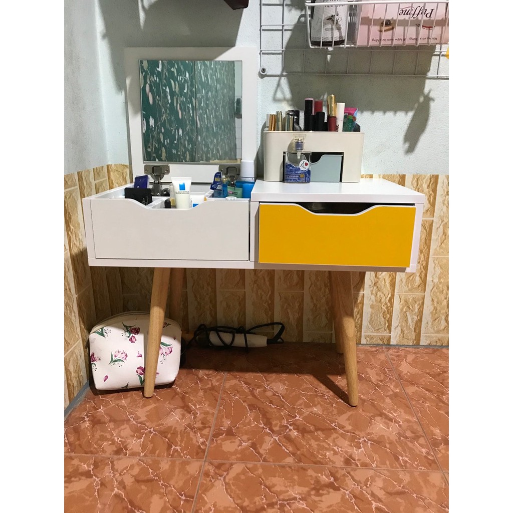 - Công năng: Là chiếc bàn trang điểm cực chill cho các quý cô thường xuyên trang điểm. Đặc biệt phù hợp với phòng có diện tích khiêm tốn.