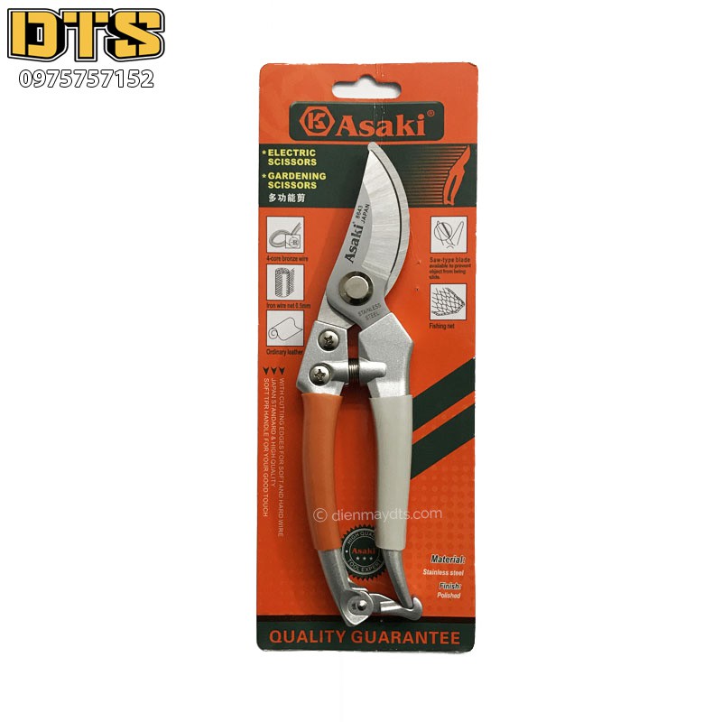 Kéo cắt cành lưỡi inox Asaki Nhật AK-8643 8inch/200mm - Kéo cắt cành thép Nhật