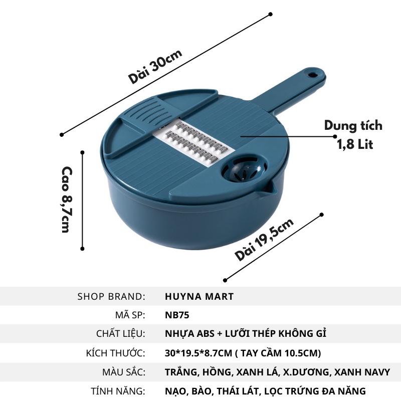 Bộ Rổ Nạo Rau Củ Đa Năng Lúa Mạch 12 Chi Tiết An Toàn Tiện Lợi Mới Huyna Mart NB75Thông tin sản phẩm: