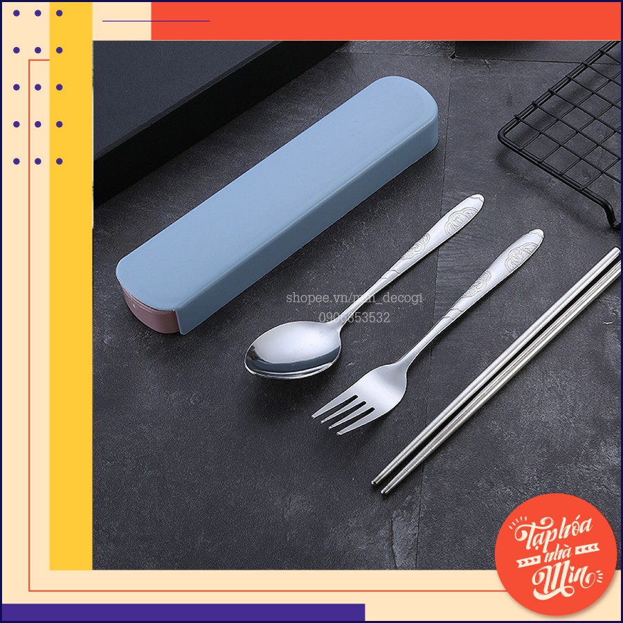 Bộ 3 Muỗng - Đũa - Nĩa Inox có hộp đựng tiện dụng