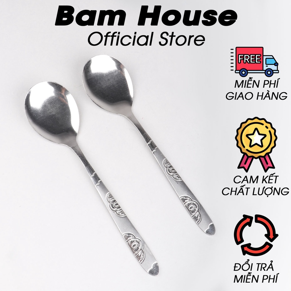 Nhà cửa & Đời sống > Bộ đồ bàn ăn > Bộ dao kéo || [Mã LIFEMALL991 giảm 10% đơn 99K] Muỗng soup tròn inox Bam House cán hoạ tiết loại dày cao cấp MHT01 - Gia dụng bếpCòn hàng
