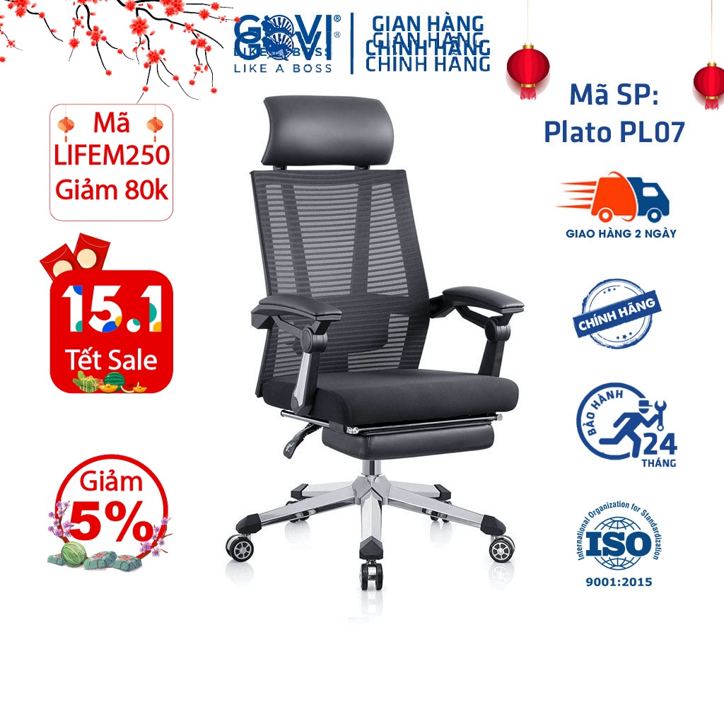 Nhà cửa & Đời sống > Nội thất > Ghế, ghế dài, ghế đẩu || Ghế công thái học GOVI Ergonomic Plato PL07 màu đenCòn hàng