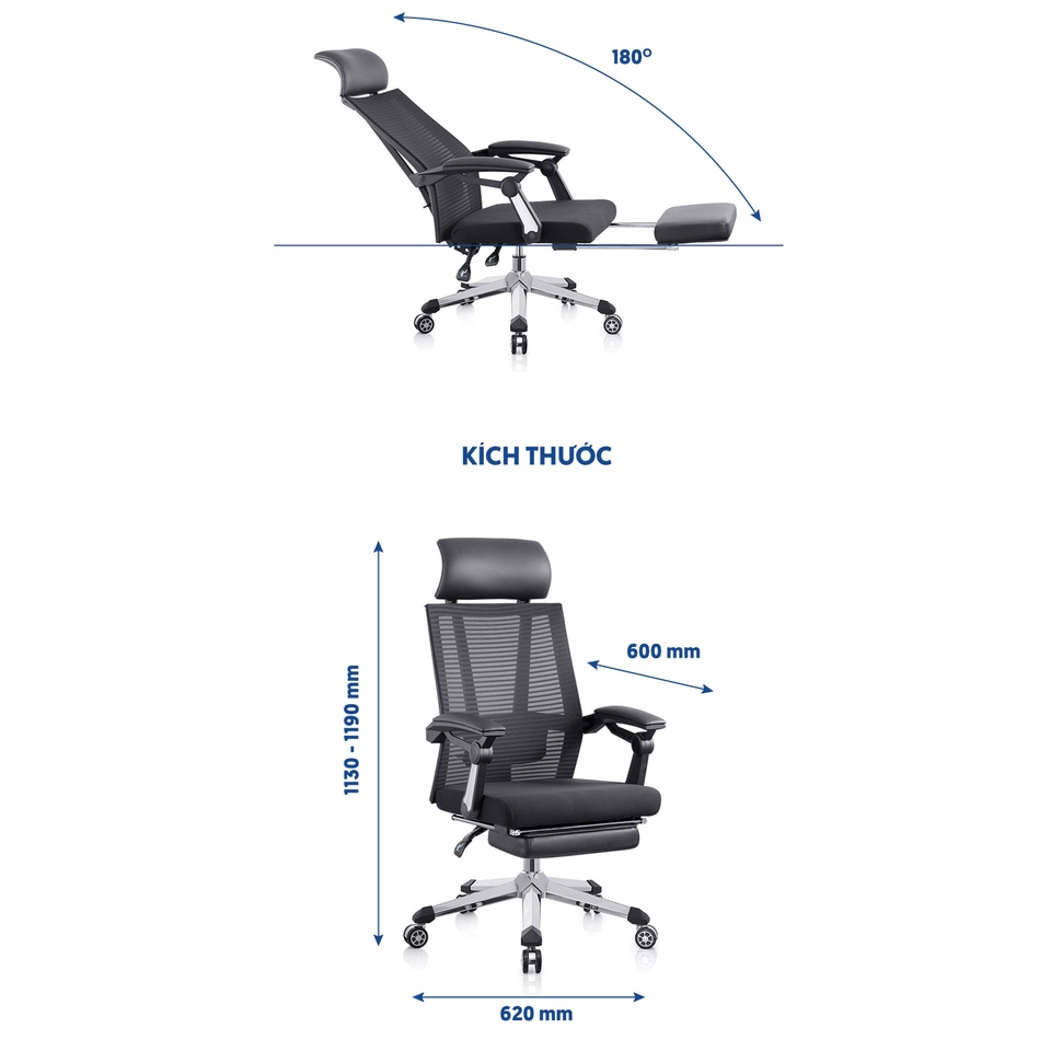 + Mâm ghế có cơ chế ngả lưng 90- 180 độ, khóa cố định nhiều vị trí.