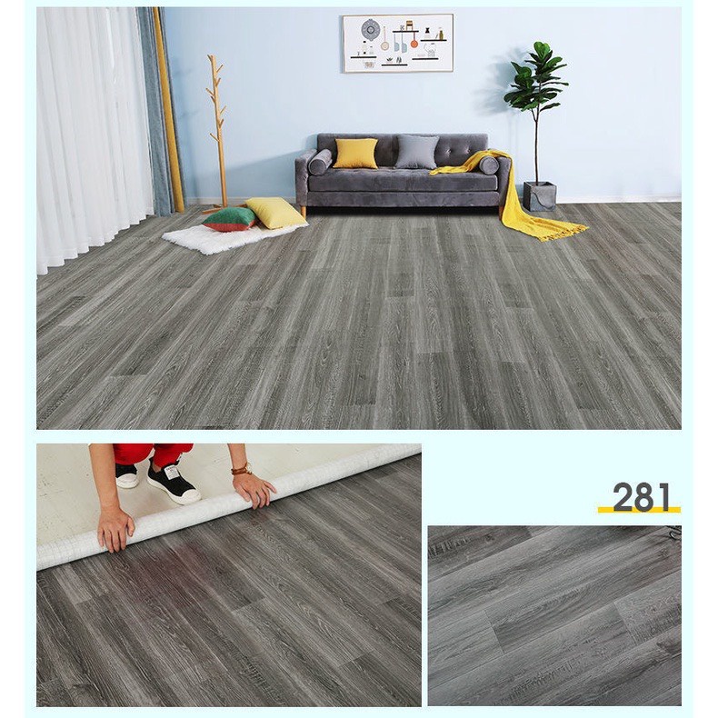 Simili trải sàn vân gỗ màu xám chất liệu dày đẹp, dai và rất bền, có thể trải sàn nhà và lót mặt bàn tủ đều được. Simili trải sàn vân gỗ không gây ẩm mốc, không mối mọt, có thể xịt nước chùi rửa bằng xà bông thoải mái. Lót gác gỗ hay nền gạch, xi măng đều được ạ.muốn cố định tấm simili ta chỉ cần quét lớp keo sữa phía dưới và trải lên. Hoặc không dùng keo thì đóng đinh cũng được.