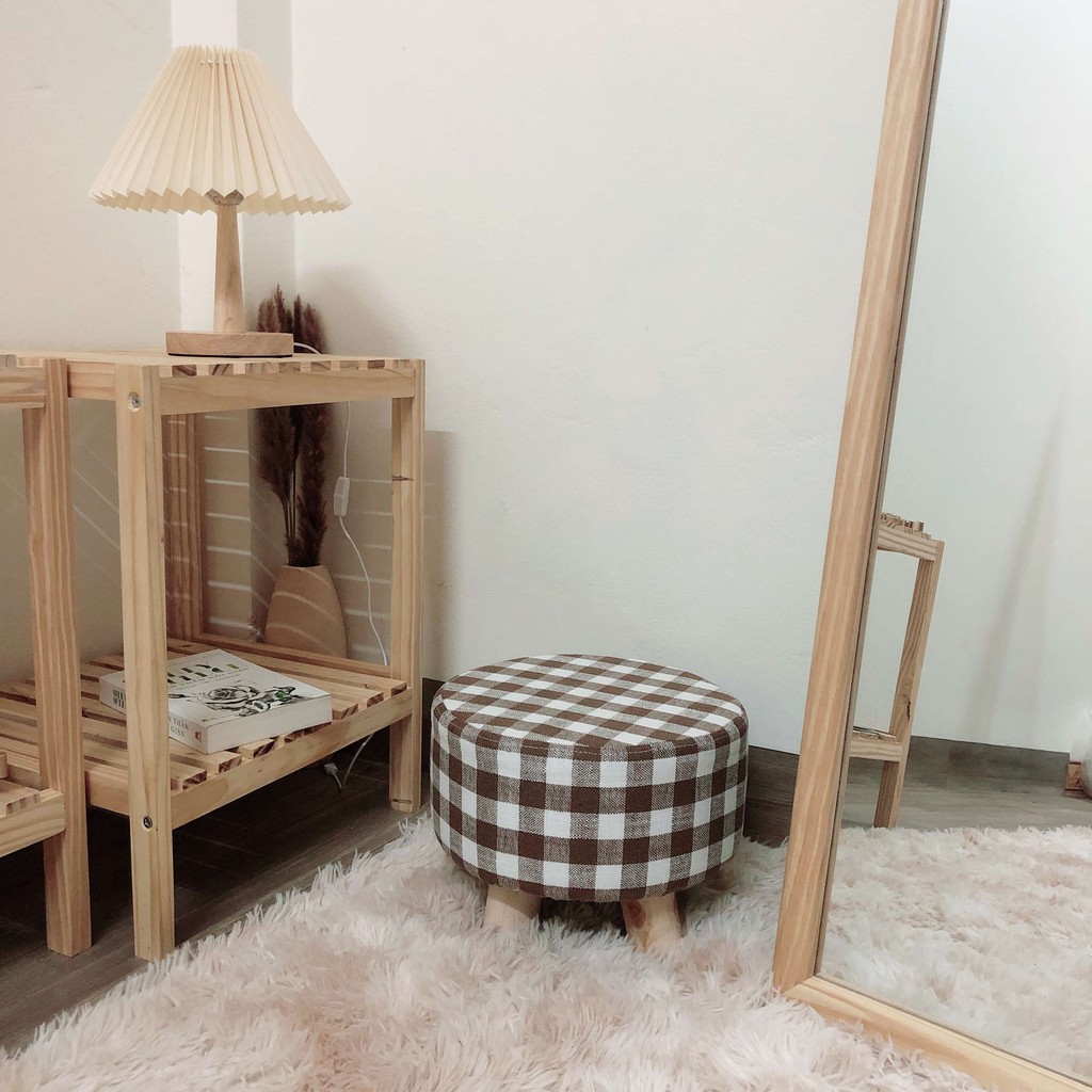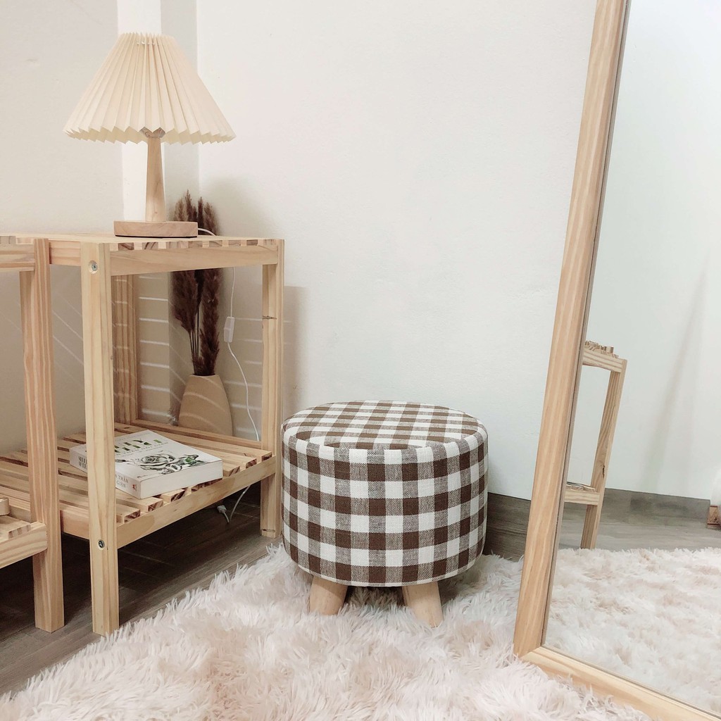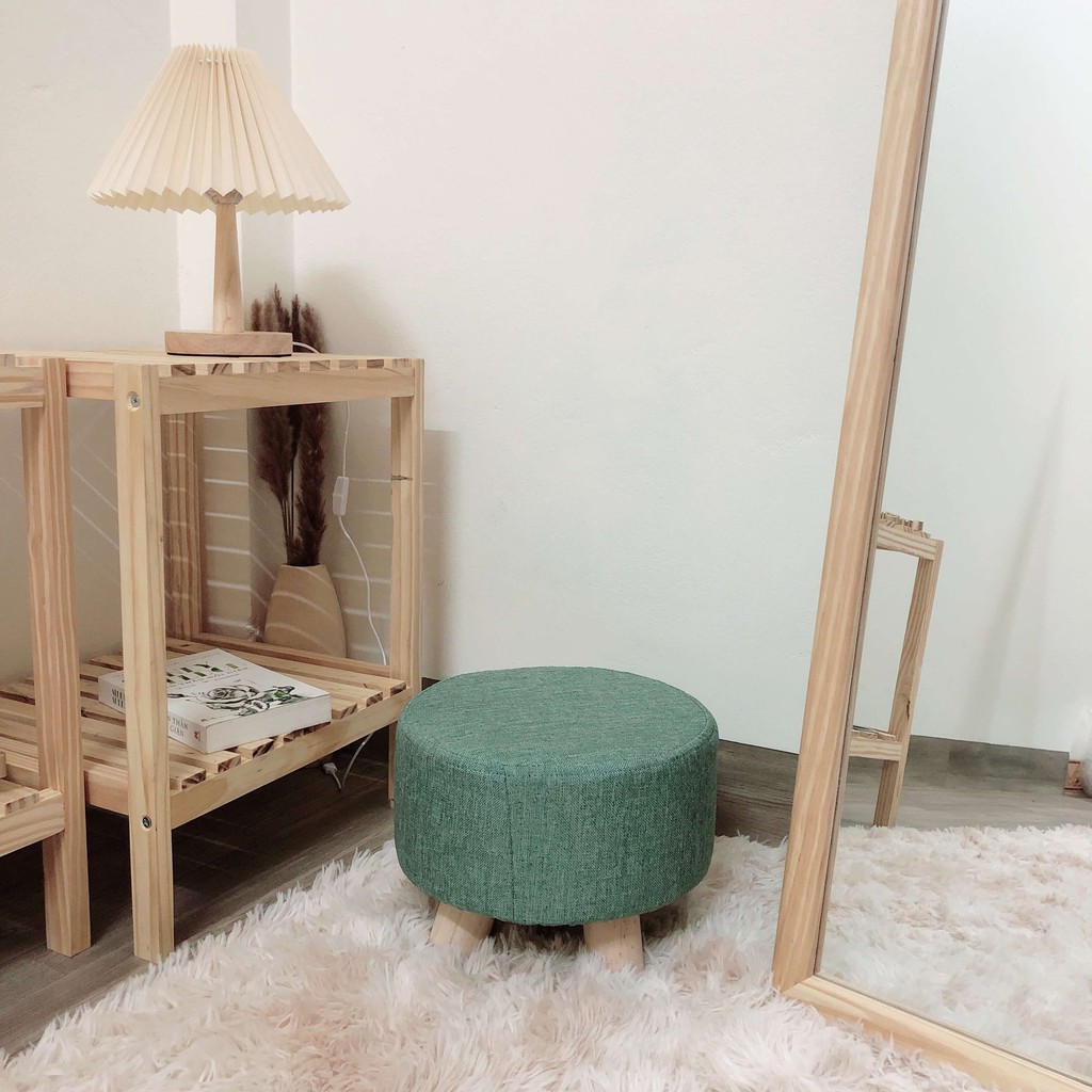 Ghế đôn chân gỗ đệm mút cao cấp, tặng kèm vải bọc ghế và miếng lót chân ghế