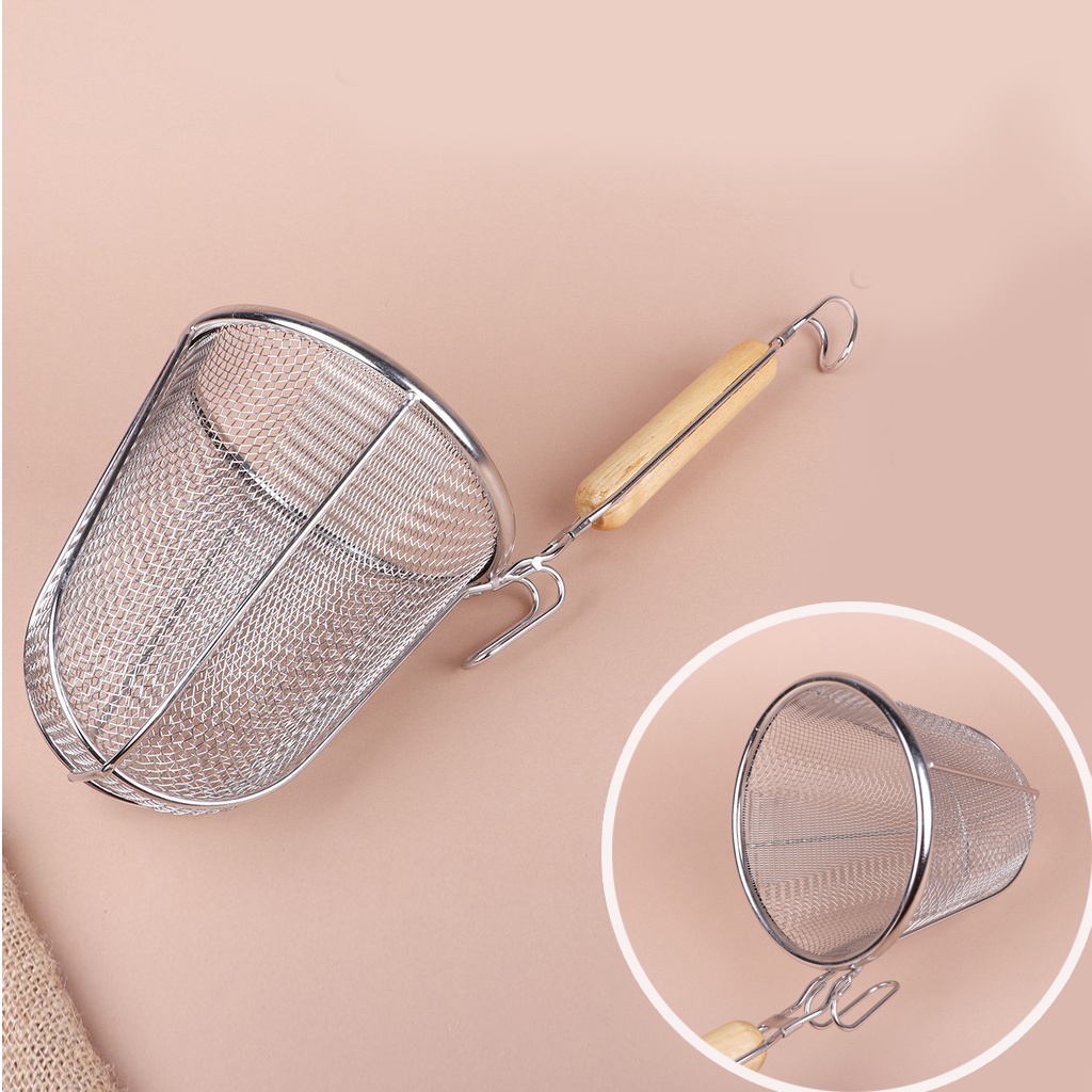 - Thiết kế các mắt lưới dày, thích hợp sử dụng trong việc chần mì, bún phở hoặc múc thực phẩm ráo nước một cách dễ dàng, tiện lợi.