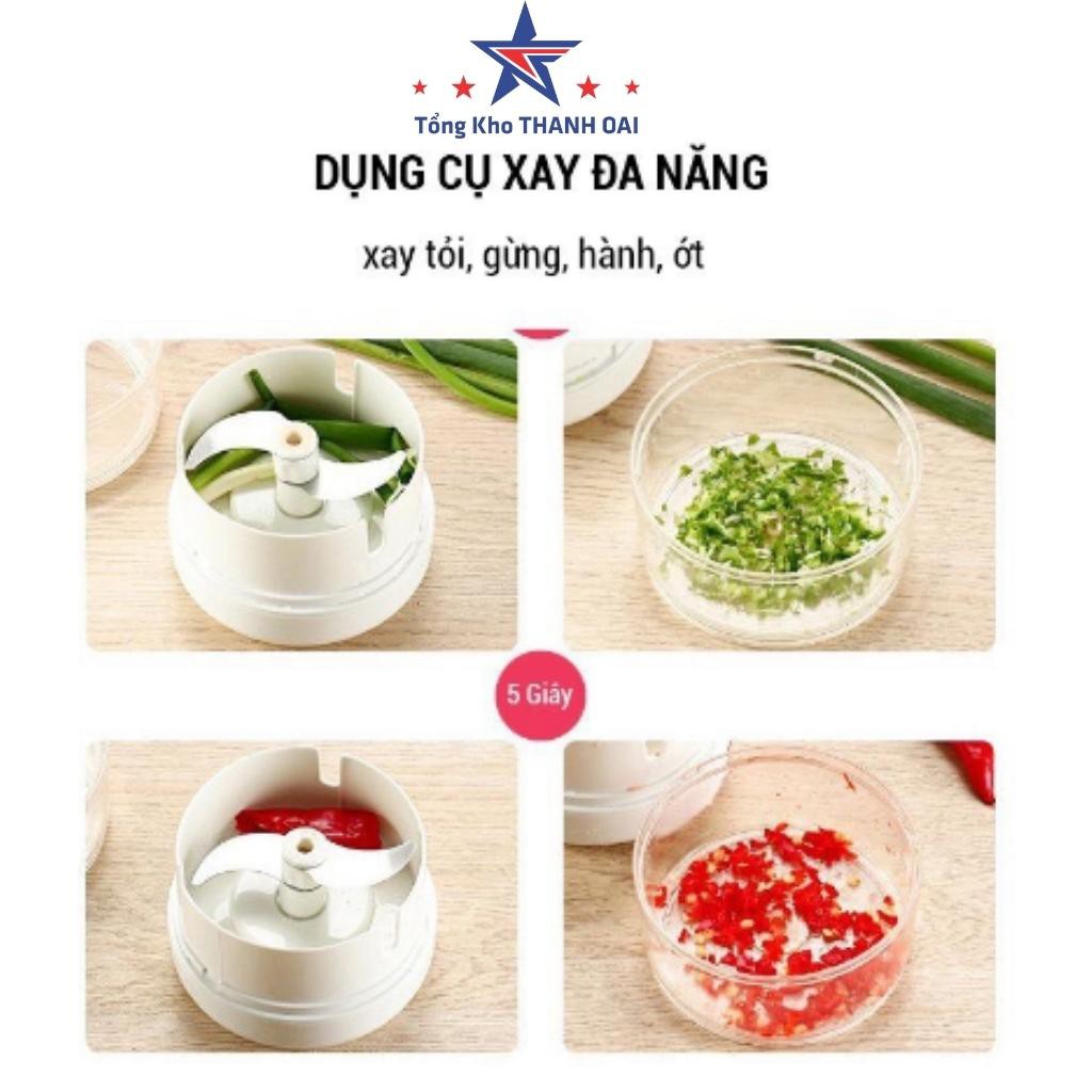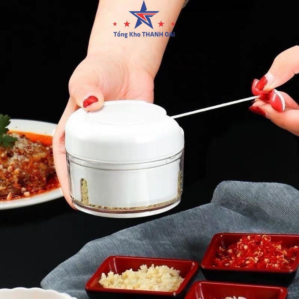 ✅ Máy xay tỏi ớt cầm tay mini dễ dàng sử dụng chỉ bằng một thao tác kéo dây tay, 2 lưỡi dao sắc bén sẽ làm nhuyễn tất cả tỏi hành ớt hay thịt đã thái nhỏ.