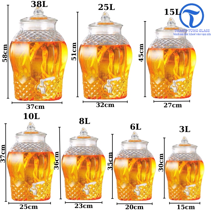 Thông số Bình Ngâm Rượu Thủy Tinh KIM CƯƠNG (3 LÍT ) CÓ VÒI & KHÔNG VÒI