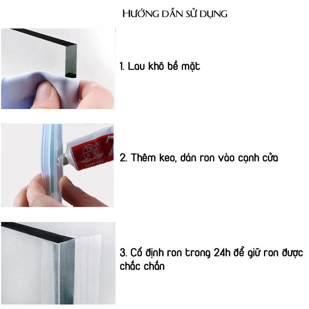 - Bộ sản phẩm gồm: 3m ron cửa kính và 1 keo dán kinh chuyên dụng.
