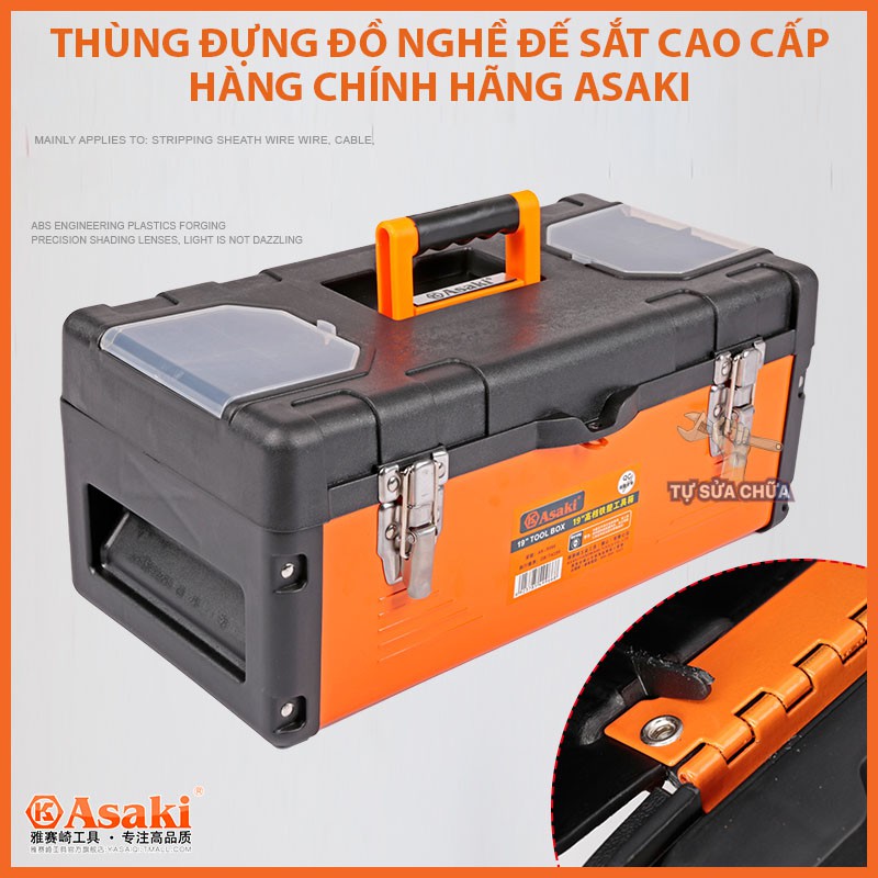 Thùng đựng đồ nghề đế sắt cao cấp chính hãng Asaki siêu bền, 2 ngăn khóa kim loại