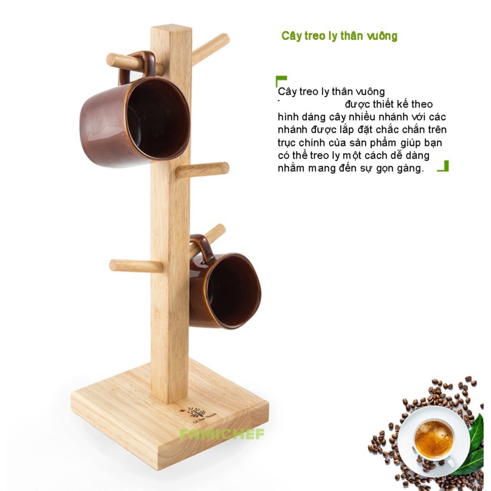 Cây treo ly thân vuông 6 nhánh - GIBA1. Chất liệu: Thớt được làm từ gỗ cao su tại Việt Nam.
