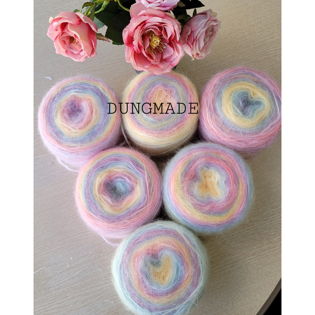 Len mohair cầu vồng đẹp cực kì đẹp, lên sản phẩm nhìn bồng bềnh như mây bayẢnh màu len do em Dungmade tự chụp thật luôn, không chỉnh màu luôn ạ.