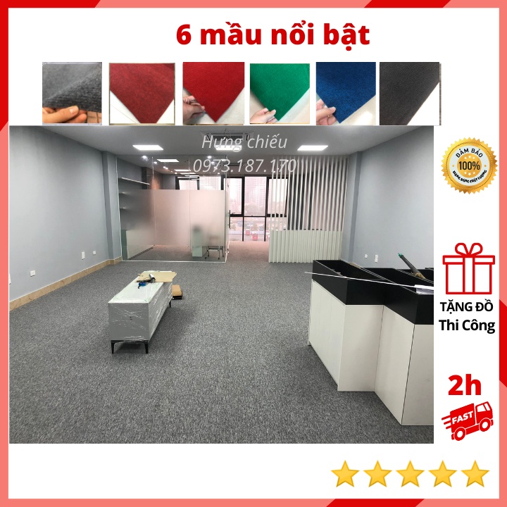 - Màu: 6 mầu: Ghi, đỏ tươi, đỏ trầu, xanh lá, xanh biển, đen. Thích hợp lát cho mọi công trình như shop quần áo, cửa hàng, văn phòng, sự kiện, tiệc cưới...Bất kỳ không gian nào cũng có thể sử dụng thảm nỉ trải sàn giá rẻ này nếu bạn thích.
