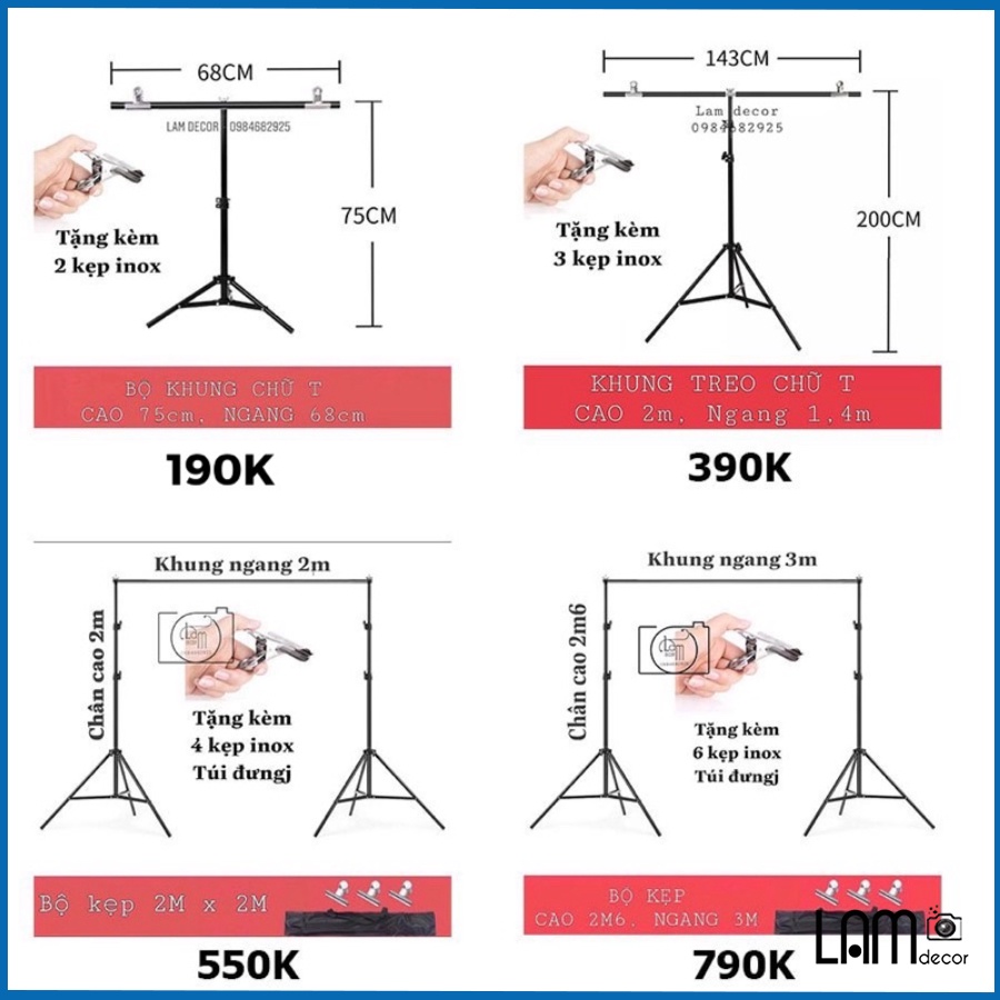 Giới thiệu Bộ khung treo phông nền di động để livestream, chụp lôkbook cao 2m