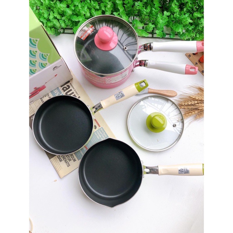 Bộ nồi & chảo nấu cháo, bột 16cm Justcook Nhật bản cho bé
