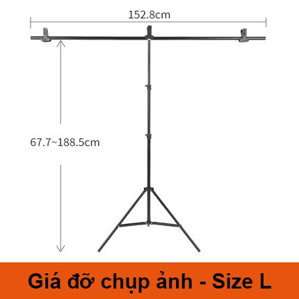 Khung treo phông chụp hình di độngKhung chụp ảnh sz M: 68 x 70 cm (tùy từng đợt giá treo sẽ như ảnh minh họa, hoặc có 3 chân như khung size L nhưng sẽ nhỏ hơn)