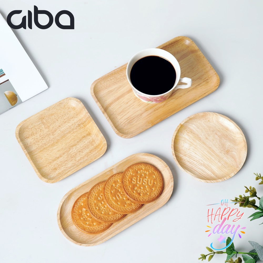 Dĩa gỗ chữ nhật GIBA, Khay gỗ tròn nhỏ decor - Lót ly gỗ, Khay gỗ đựng đồ ăn