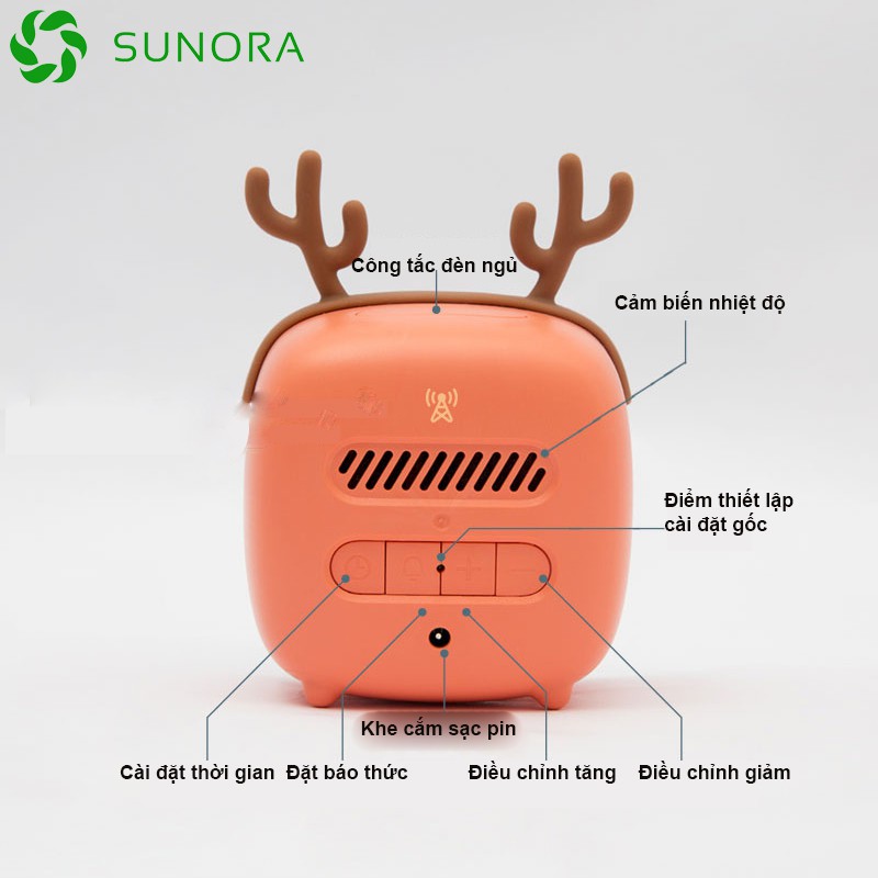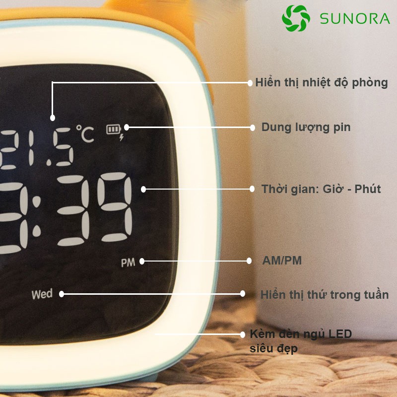 - Chức năng: Báo thức, Đo nhiệt độ, Đèn ngủ