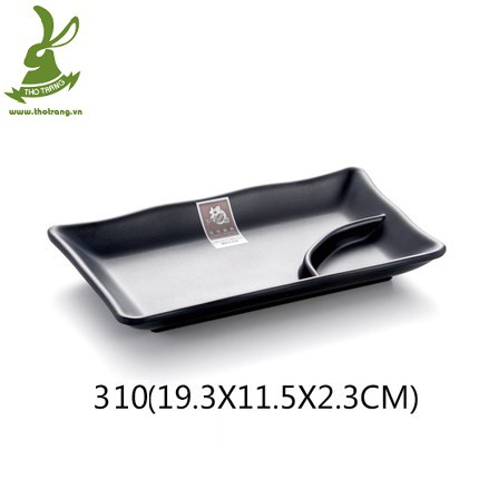 Dĩa ăn vặt chữ nhật 310 có ngăn đen cao cấp 19.3x11.5x2.3 cm
