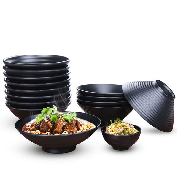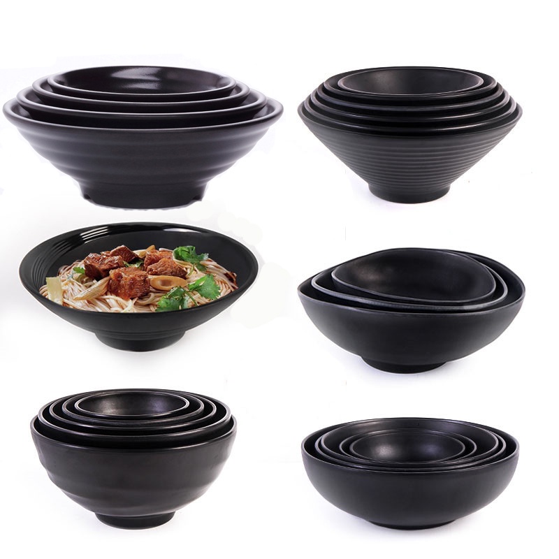 Nhà cửa & Đời sống > Bộ đồ bàn ăn > Tô || Tô Nhựa Melamine Viền Xoắn Màu Đen Nhám Cao Cấp Đủ SizeCòn hàng