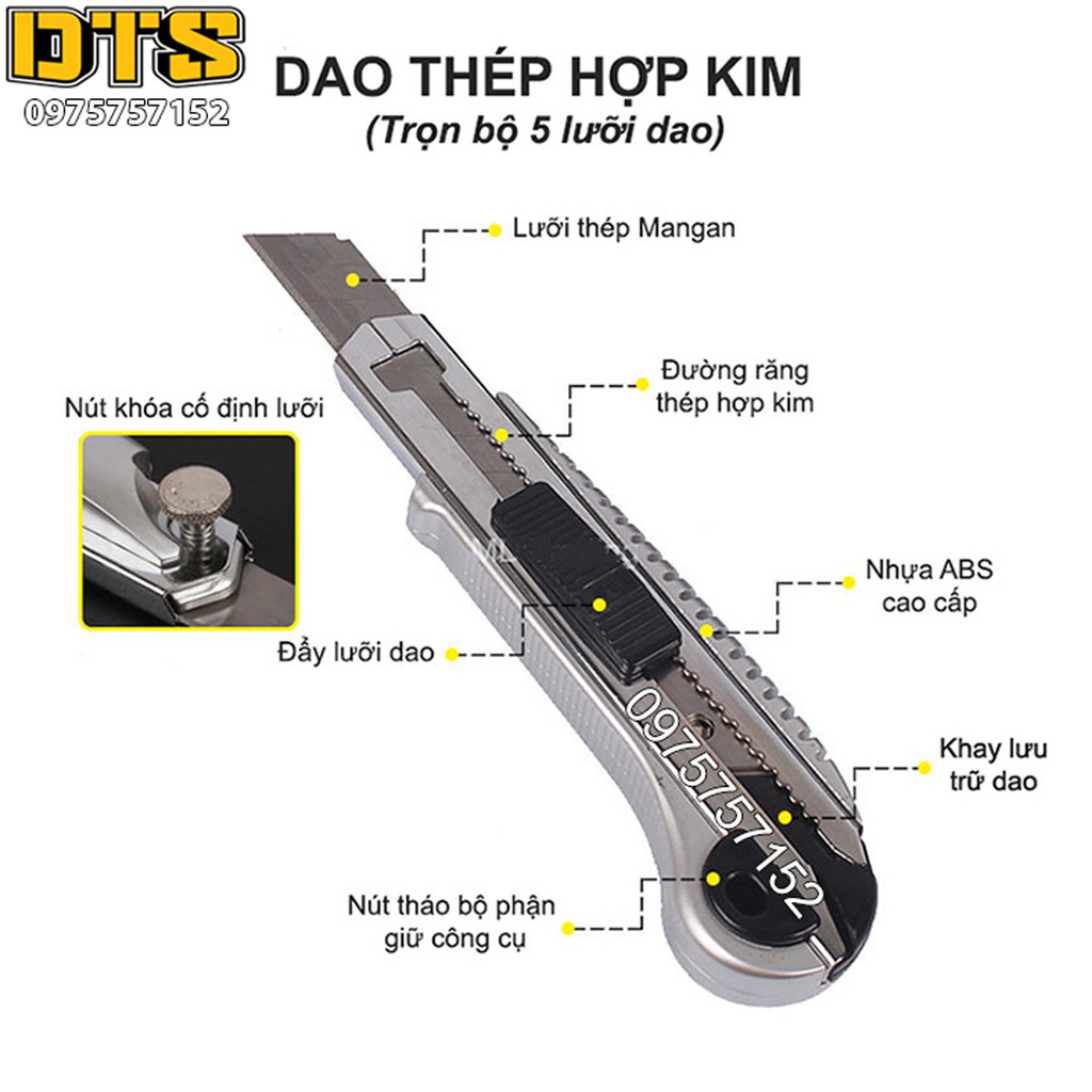 - Tay cầm gắn với lưỡi dao có khóa an toàn