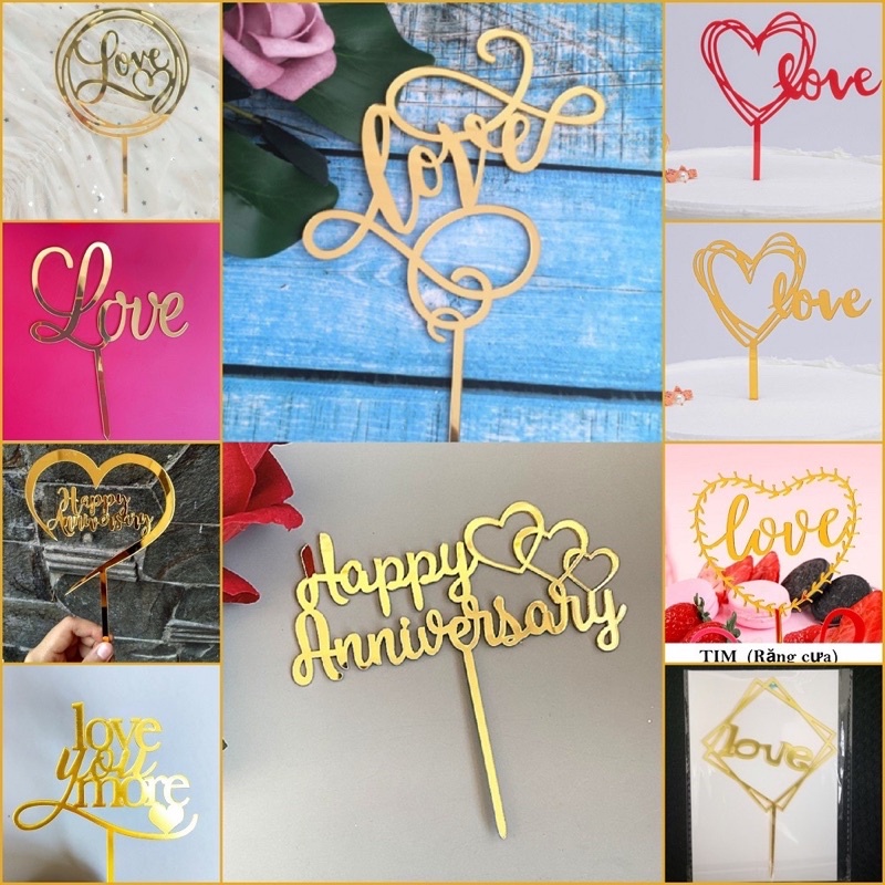Chữ cho bánh ga to , hoặc cài vào bó hoaCó chữ Love hoặc chữ Happy birthday sỉ 1 bịch 10 chữ. chất liệu mika