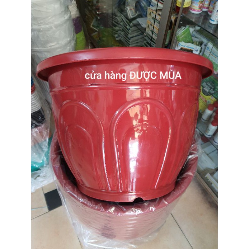 chậu kiểu tròn, đường kính 50cm ( phủ bì ). cao 36cm.màu đỏ.