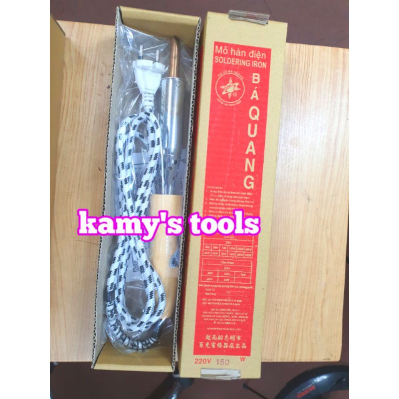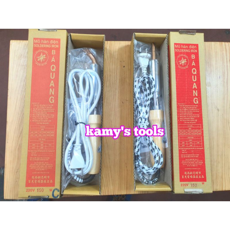 Mỏ hàn điện Bá Quang thuộc cơ sở Bá Quang là một nhãn hiệu mỏ hàn nổi tiếng tại Việt Nam 60 năm qua. Được sáng lập từ năm 1960, đến nay mỏ hàn Bá Quang đã và đang là một thương hiệu Việt Nam được sự tin dùng của khách hàng trên khắp cả nước.Mỏ hàn điện Bá Quang 150w có cán làm bằng gỗ, sử dụng dòng điện 220V nên rất dễ sử dụng.