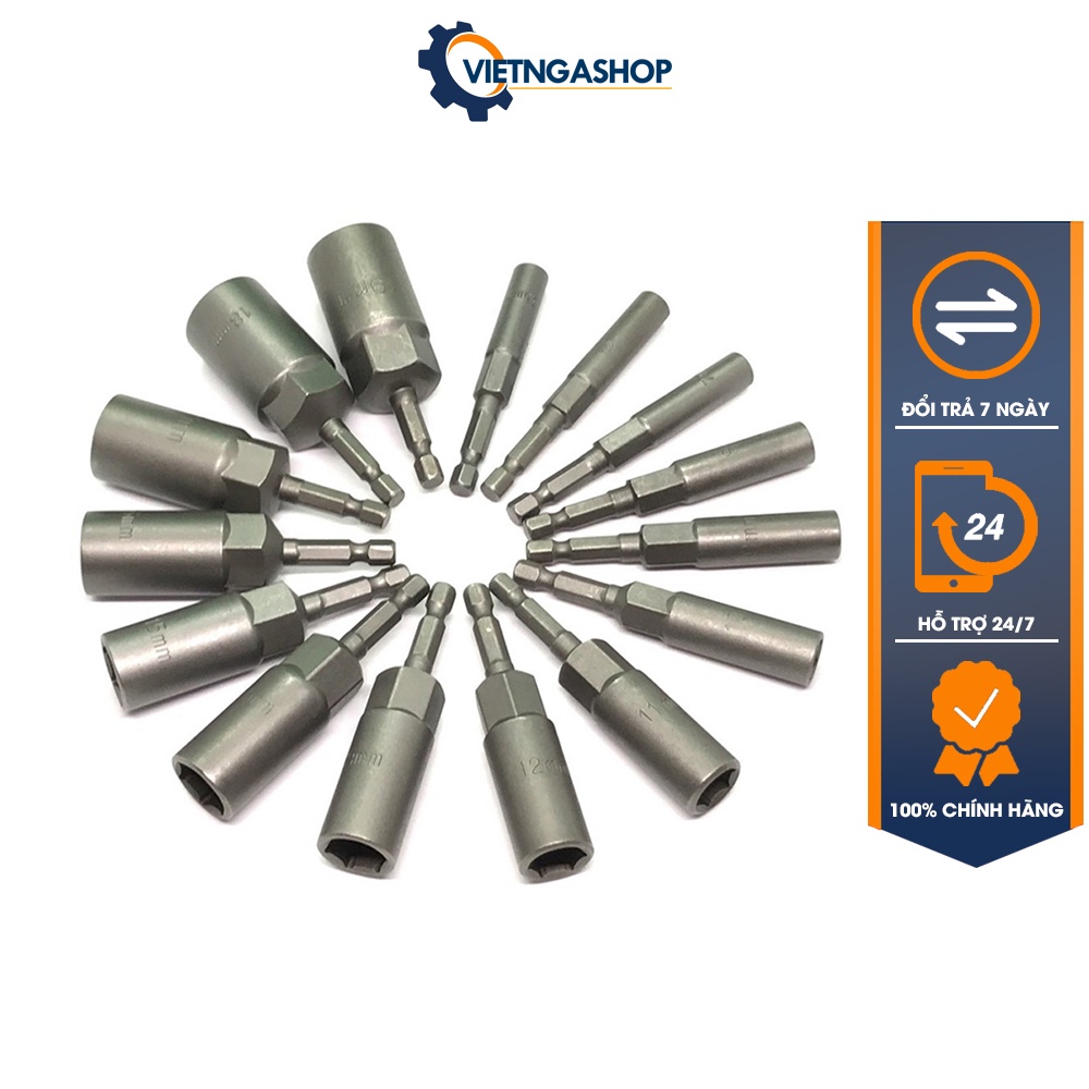 - Chụp vặn bulong chuôi lục giác 6,35mm (1/4) phù hợp dùng cho máy bắt vít để vặn, mở bulong.