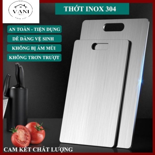 - Thớt inox có độ lì, 2 mặt nhẵn, không sợ thực phẩm thái bị trơn trượt