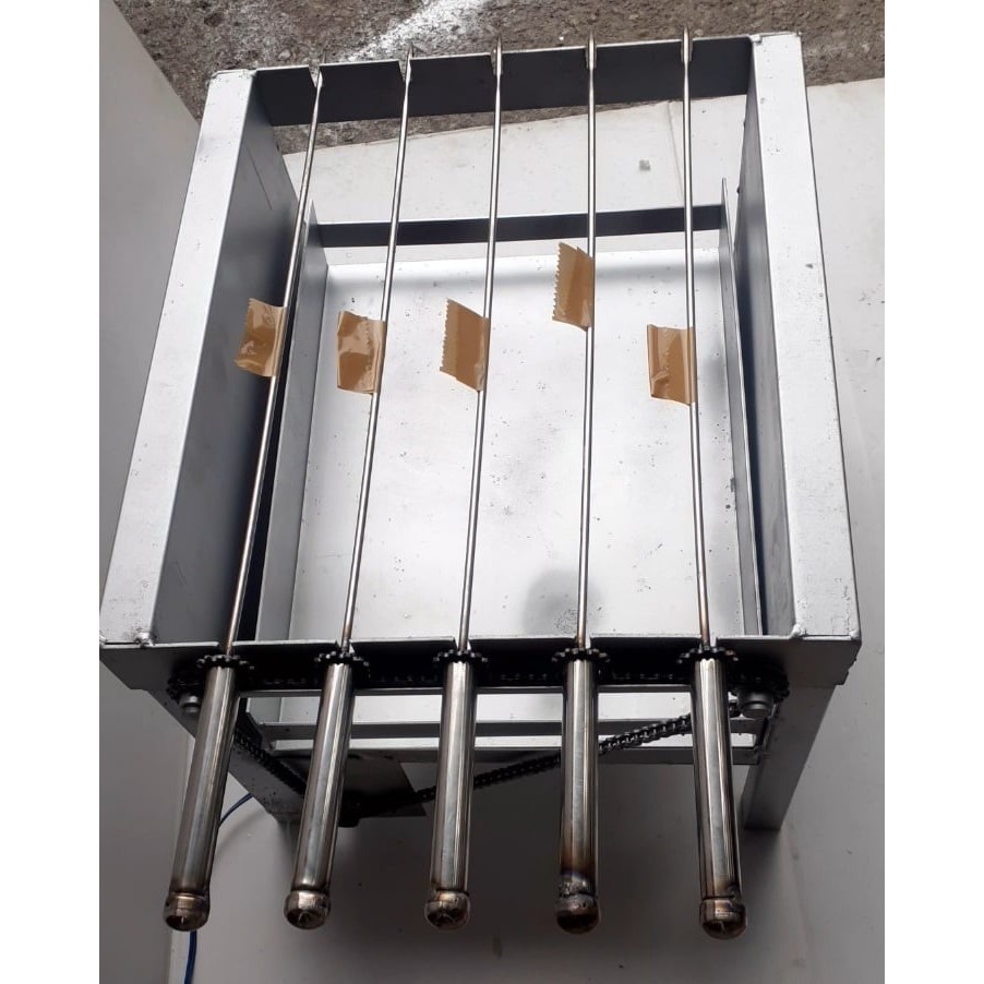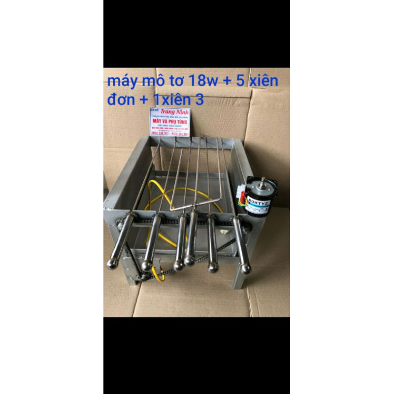 1_máy inox mô tơ to gồm : mô tơ 18w và 5 xiên đơn +1 xiên 3 chạc nướng gà vịt