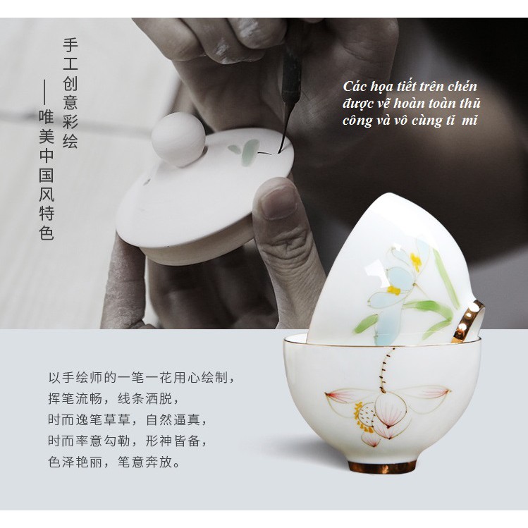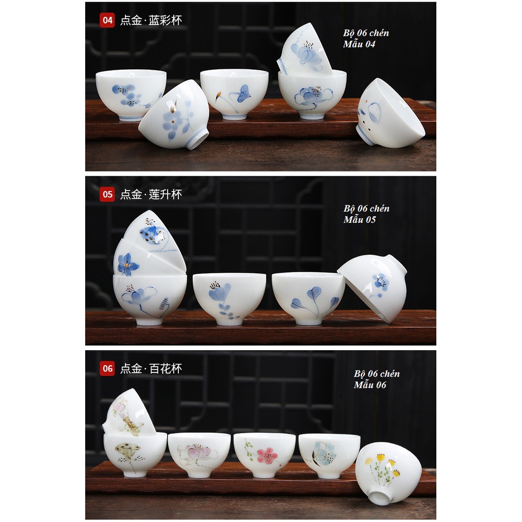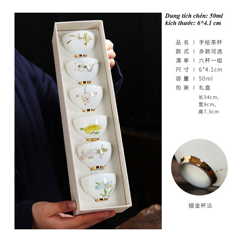 Bộ chén sứ Cảnh Đức vẽ tay thủ công (Bộ 06 chiếc kèm hộp quà)Mô tả sản phẩm: