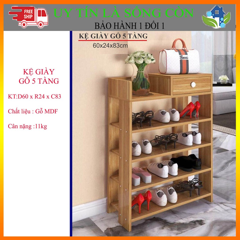 ✅ Kệ giày gỗ được thiết kế 5 tầng để giày dép và 1 ngăn kéo tủ đồ cá nhận như : xi đánh giày, vật dụng khác....