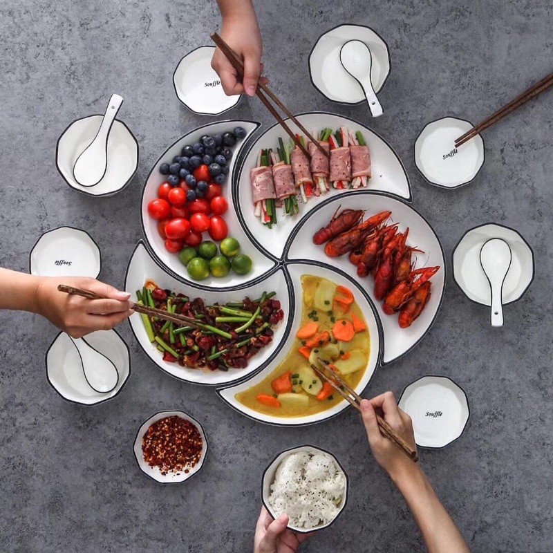 BỘ Bát Đĩa Sứ Xương Cao Cấp5 Đĩa sứ trăng khuyết xếp được rất nhiều kiểu khác nhau