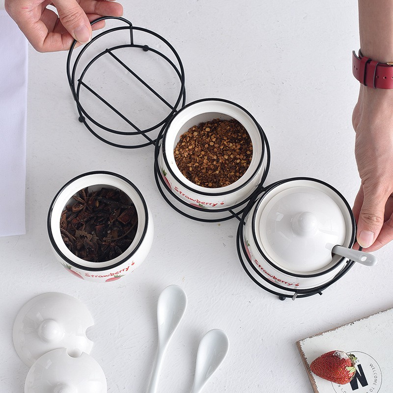 COMBO 3 Hũ đựng gia vị có nắp kèm thìa và khay sắt tiện dụng